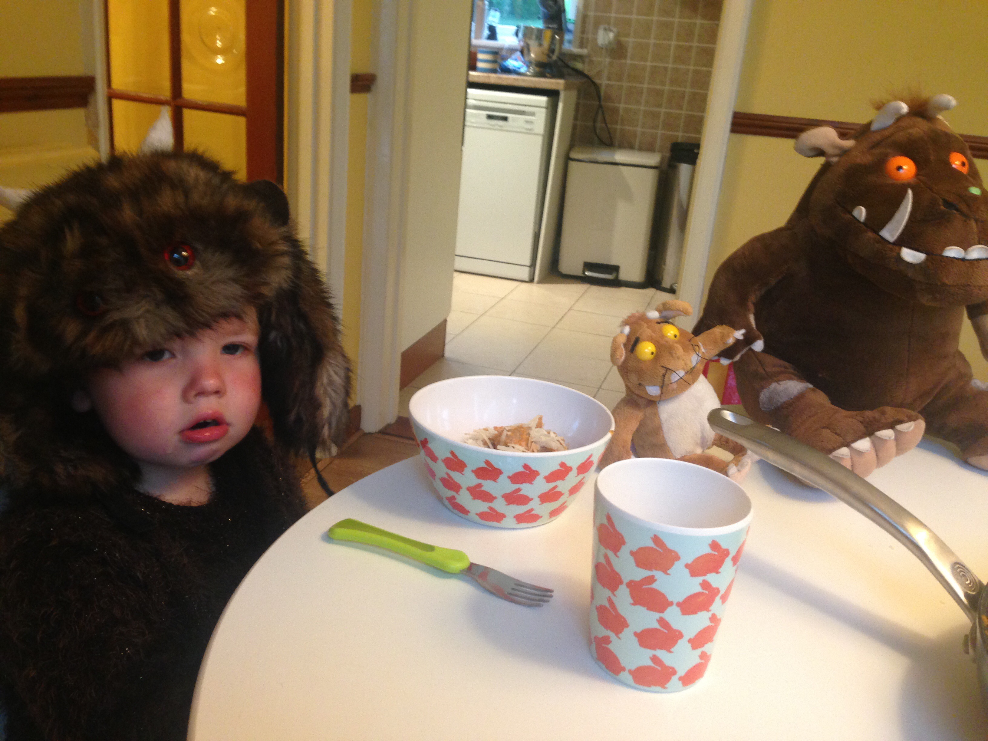 Eat naked from the waist down, dressed as the Gruffalo waist up.