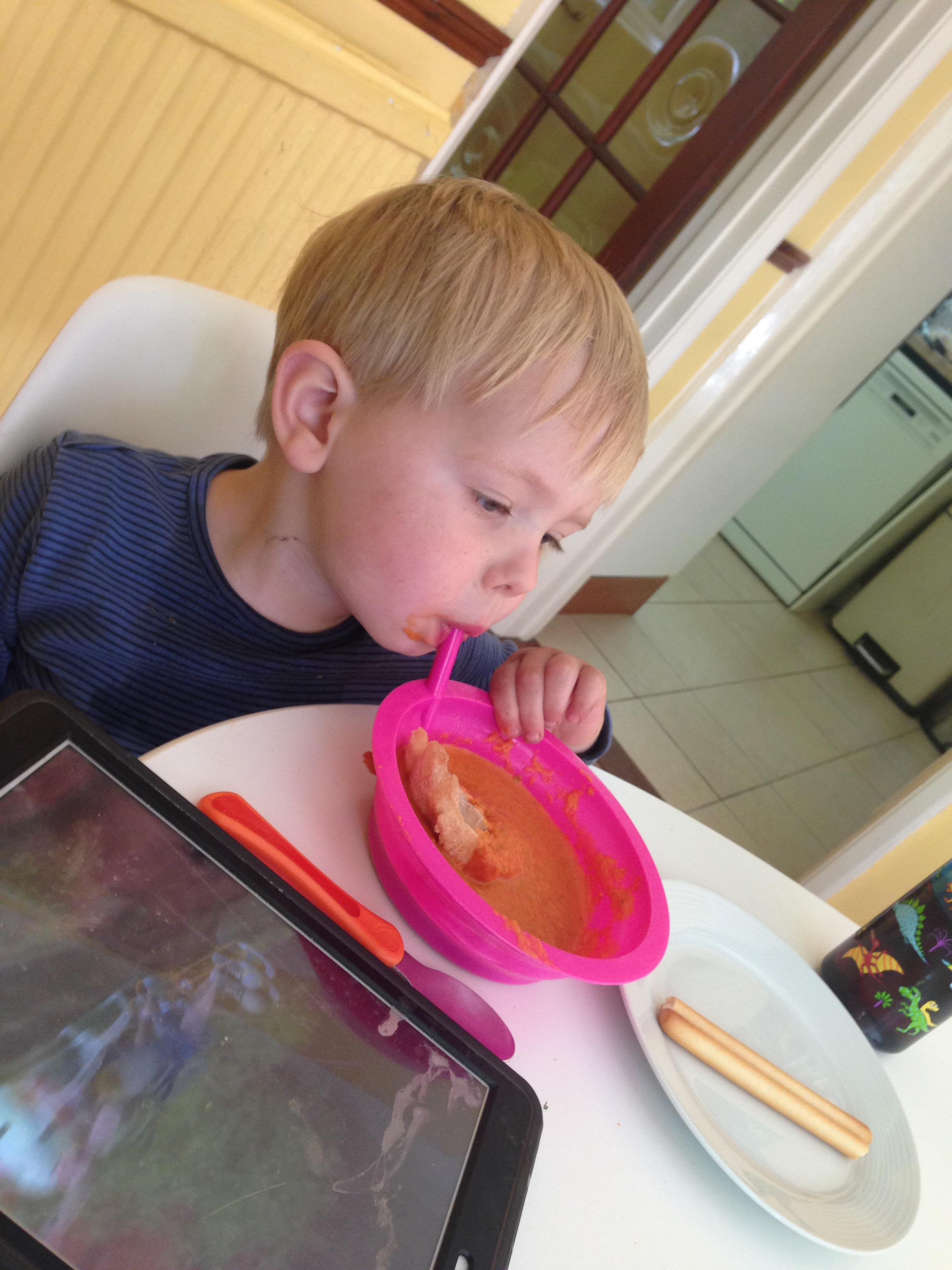 Bert took a sip through his bowl’s in-built straw and said, ‘mmm, it really is tasty!’ How could I be impatient with such a boy?