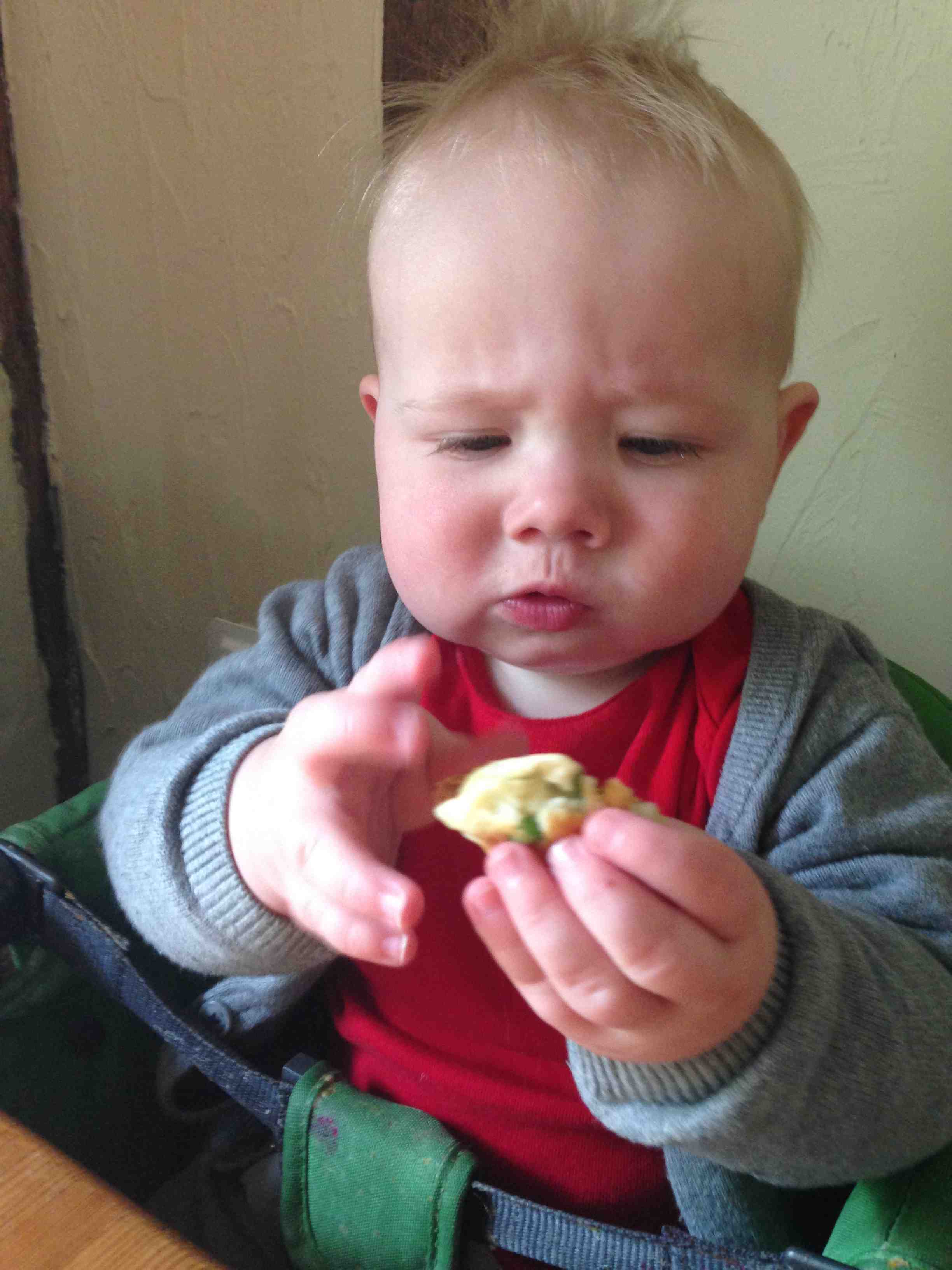 A new category in honour of Anna and her daughter, Fearne of the evil cackle – portable finger food. This is a little nursery-food-like as it comes, though I eat it like that with Bert, but you can add crispy bacon and a poached egg and call it brunch.