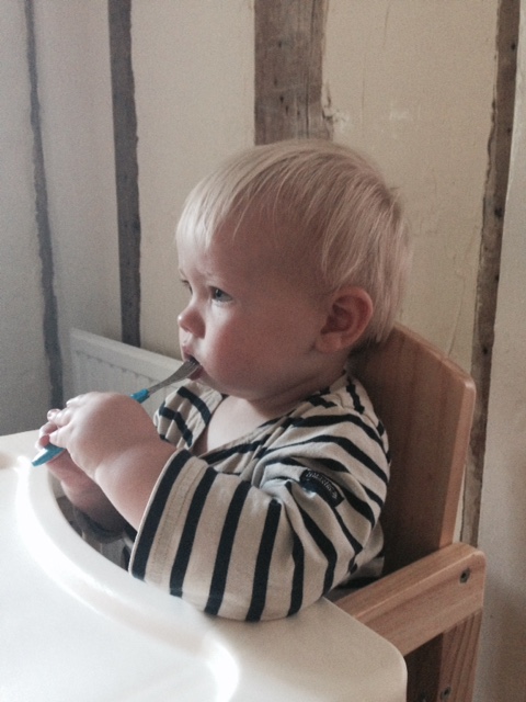 Bert pushed his bowl away and refused to eat then sat on our knees, one at a time, working his way through all of our food. Every time we tried to take a mouthful he’d point at himself and say ‘Ber’ firmly. We’re going to market it as the Bert diet.