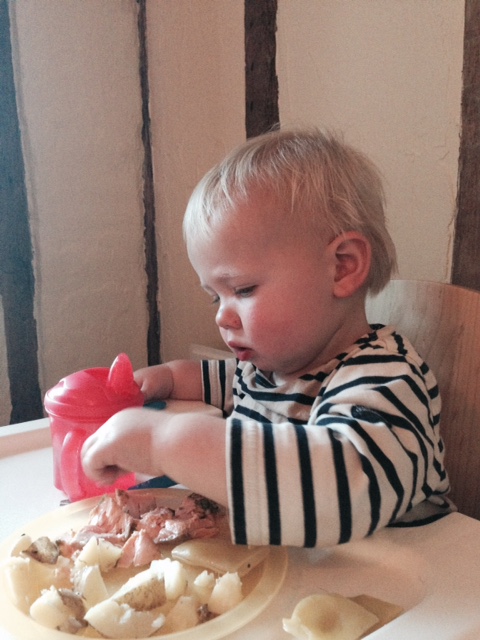 This is a version of a Jamie Oliver recipe. Bert spurned it, but I put that down to teething (teething which had miraculously disappeared by the time he was offered his first chocolate milkshake later). Not sure how we’ll justify his evil behaviour when those last two molars have come through.