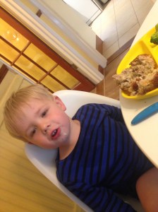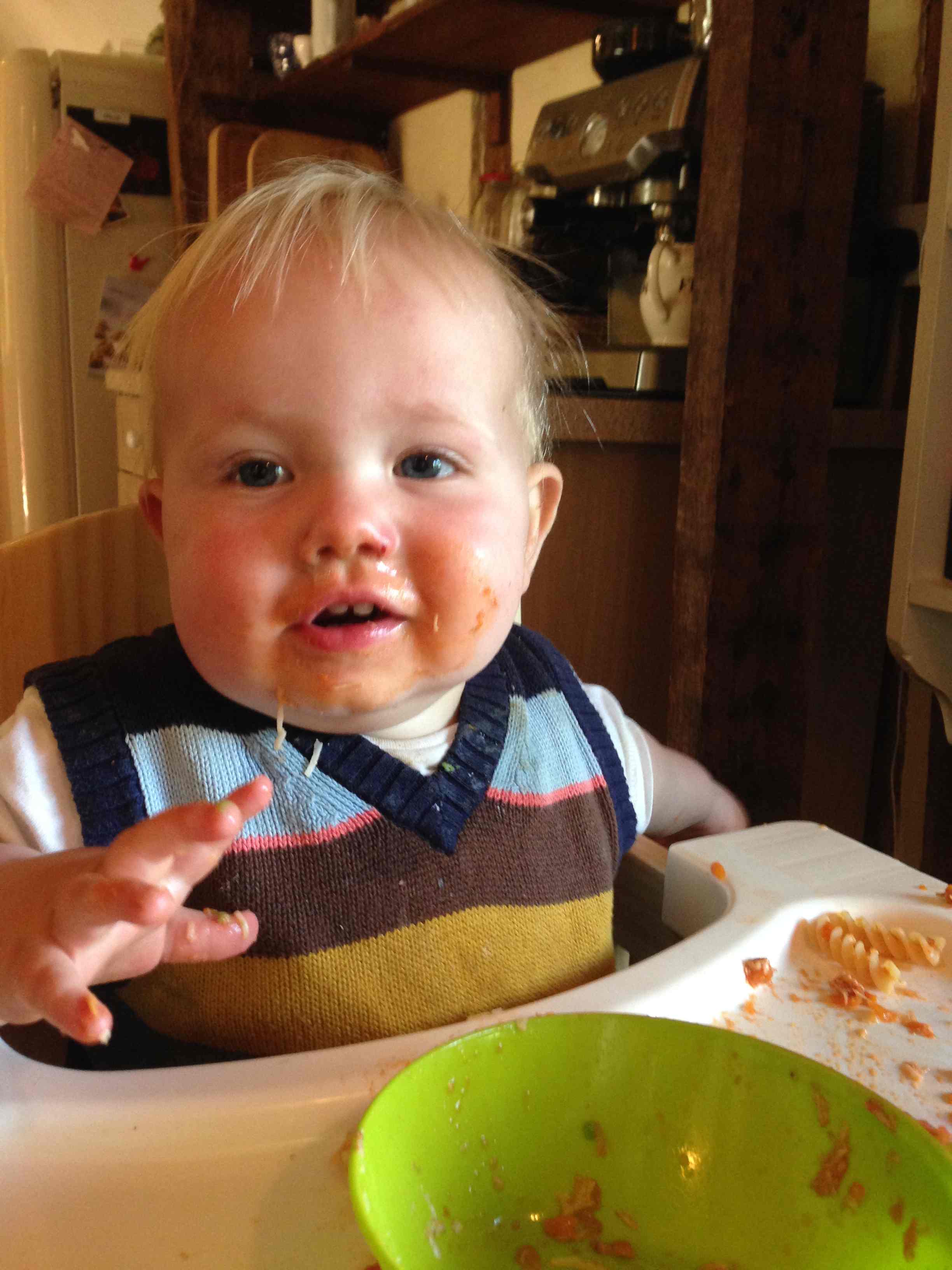 Photographed in the middle of singing our own version of The Wheels on the Bus. I made the mistake of suggesting ‘the grandad on the bus says have some crisps’ as a verse, after which the fish cakes lost their appeal.