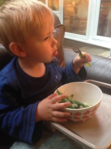 Despite the appalled look on his face in the picture, Bert demolished this. I felt briefly filled with a warm glow of smugness. Then I remembered that his dinner on Friday night was a bowl of Rice Krispies and a bag of chocolate buttons.